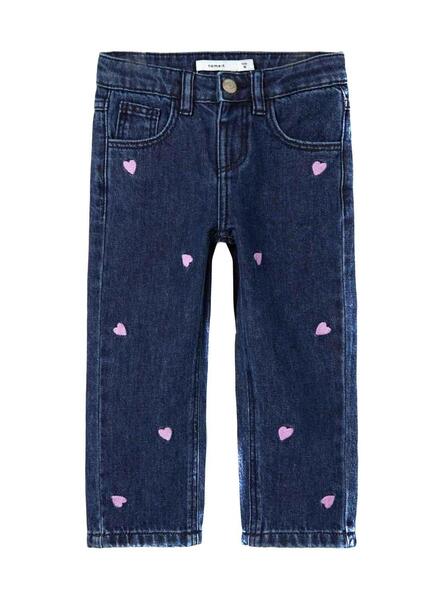 Pantalón Vaquero Name It. Color azul. Corazones bordados. 5 bolsillos. Corte regular.