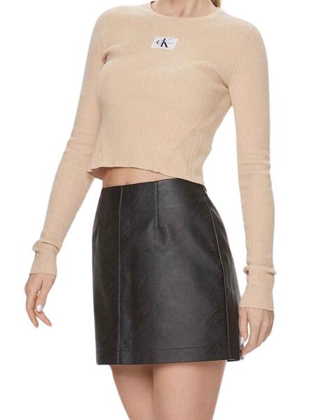Falda de cuero sintético Calvin Klein. Modelo Faux Leather. Color negro. Etiqueta con logo en la cintura.