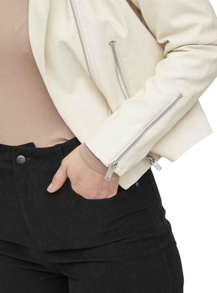 Cazadora Vila. Color beige. De piel sintética. Cierre de cremallera. Bolsillos con cremallera. Estilo biker. Manga larga con cremalleras.