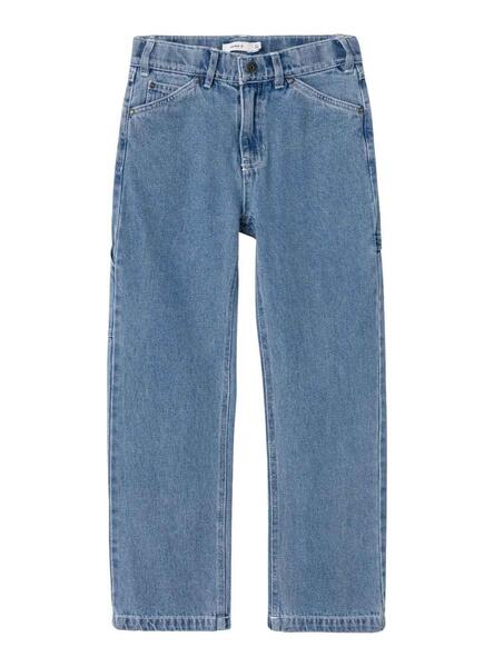 Pantalon Vaquero Name It. Modelo Ryan. Corte recto. Cintura ajustable. Ajuste holgado. Denim medio. Pierna ancha. Bolsillos laterales.