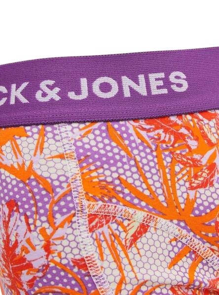 Boxer Jack and Jones. Modelo Damian. Pack de tres unidades. Mutlicolor. Dos con estampado tropical. Uno azul marino liso.