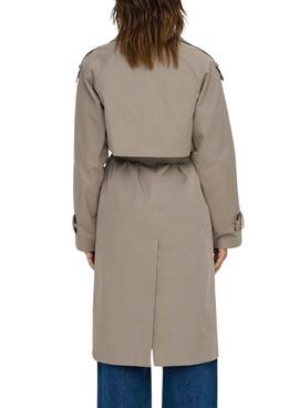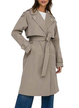 Chaleco Only. Modelo Diane. Color beige. Cuello en pico. Cierre con botones. Cinturon de ajuste trasero. Bolsillos de vivo.