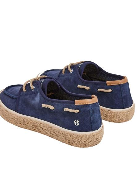 Zapatillas Pepe Jeans. Modelo Port Coast. Color marino. Cierre de cordones. Entresuela de yute. Suela de goma. Logo de la marca en la lengüeta.
