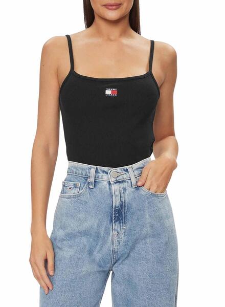 Camiseta Tommy Jeans Badge Rib Strap negra para mujer