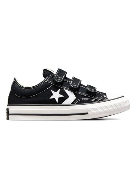 Zapatillas Converse. Modelo Star Player Easy-On. Color negro. Para Niños. Corte bajo. Parte superior de lona duradera. Tres correas con velcro. Tobillo acolchado. Amortiguación de espuma Converse Hybrid. Logo posterior. Llamativo logotipo de estrella.