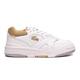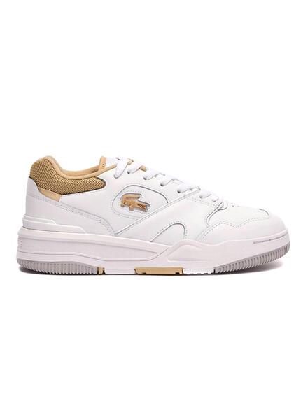 Zapatilla Lacoste. Modelo Lineshot. Color blanco con cuello a contraste. Zapatilla baja. Empiene de piero y partes de malla. Suela de goma. Detalles en color camel. Cocodirolo en lateral a contraste.