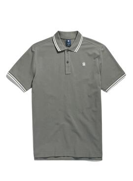 Polo G-Star. Color gris. Manga corta acanalada. Cuello de polo acanalado. Tapeta de dos botones. Logo de la marca bordado en el pecho. Corte ajustado. Aberturas laterales. Bajo recto. Detalle de rayas en el cuello y las mangas.