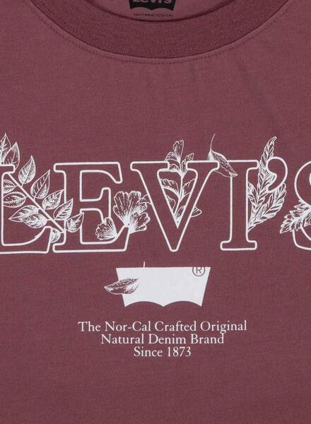 Camiseta Levis. Modelo Natural. Color granate. Manga corta. Cuello redondo. Impresión gráfica en el pecho. Regular fit.