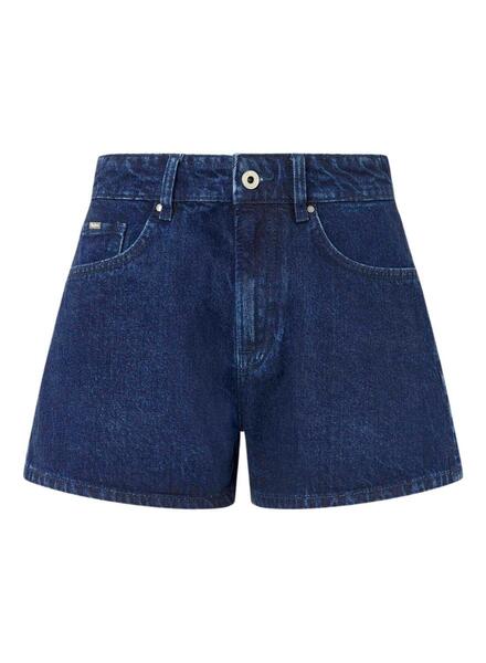 Short Pepe Jeans. Modelo A-Line. Denim oscuro. Cintura alta. Cierre de boton y cremallera. Cinco bolsillos. Parche en la cintura. Corte en linea A.