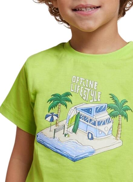 Camiseta Mayoral. Modelo On The Road. Color verde. Cuello redondo. Estampado gráfico en el pecho. Manga corta. Regular fit.