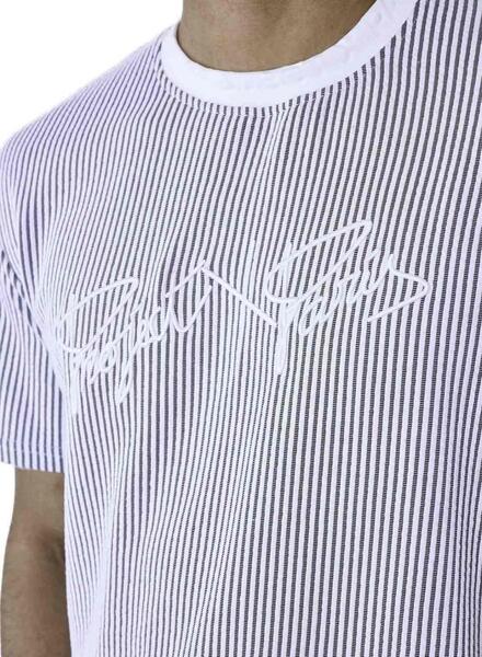 Camiseta Project x Paris. Color gris y blanco. Estampado con rayas verticales. Manga corta. Cuello redondo. Logo bordado en el pecho. Ajuste regular.