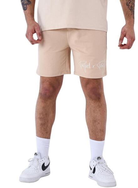 Bermudas Project x Paris. Color beige. Basico. Logo bordado en blanco. Bolsillos laterales. Cintura elastica.