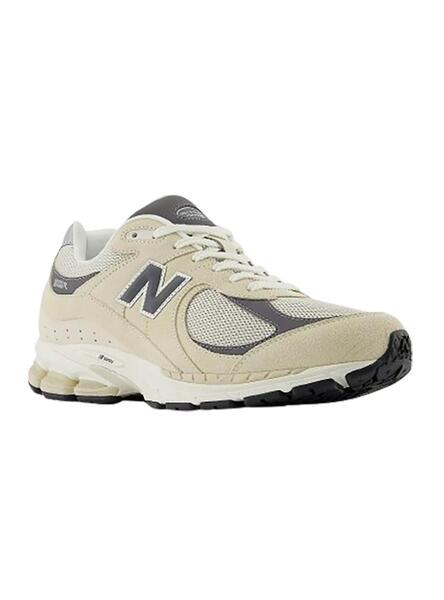 Zapatillas New Balance. Modelo M2002. Color beige y gris. Paneles de ante y malla. Cierre con cordones. Suela retro de goma. Logo lateral.