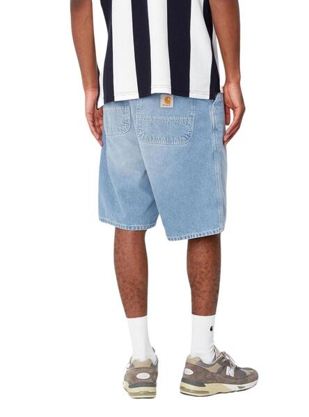 Bermudas Carhartt. Modelo Simple. Denim claro. Efecto desgastado. Ajuste holgado. Bolsillos laterales. Bolsillos traseros. Parche de la marca. Cierre con boton y cremallera.
