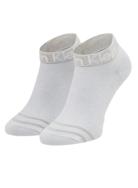 Pack Calcetines Calvin Klein Jeans. Modelo Quarter. Color blanco y gris. Pack de dos pares. Logo en la parte superior. Largo por el tobillo.