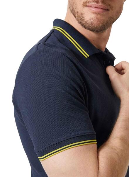 Polo Helly Hansen. Modelo Kos. Color azul marino. Cuello con botones. Manga corta. Vivo en amarillo. Logo estampado en el pecho. Ajuste slim.