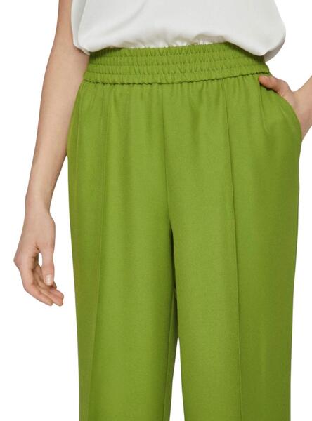 Pantalón Vila. Modelo Winnie. Color verde. Cintura alta. Corte holgado. Bolsillos laterales. Banda elástica en la cintura. Corte recto.