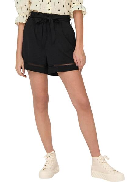 Shorts Only. Modelo Franci. Color negro. Lazo a modo de cinturón. 2 bolsillos laterales. Detalles rotos en la parte inferior.