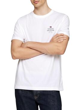 Camiseta Tommy Hilfiger. Modelo Columbus. Color blanco. Cuello redondo. Manga corta. Logo pequeño estampado en el pecho. Ajuste slim.