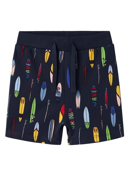 Bermuda Name It. Estampado surfero. Color marino. Cintura de goma ajustable. Con cordones. Corte regular. Cintura media.