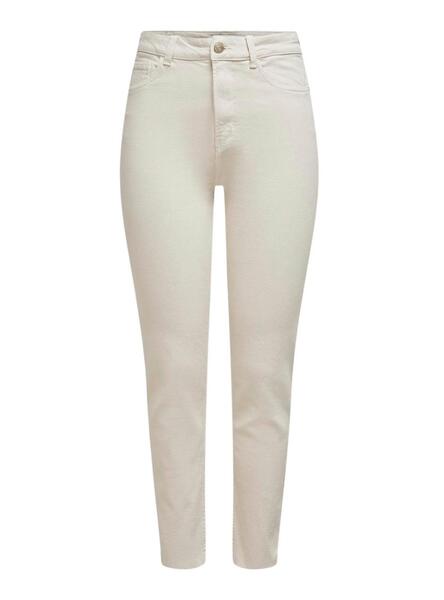 Pantalon Only. Modelo Emily. Color beige. Corte recto. Cierre con cremallera y boton. Bolsillos delanteros y traseros. Largo por los tobillos.