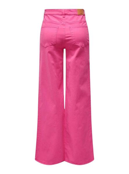 Pantalón Vaquero Only. Color rosa. Cintura alta. Pierna ancha.5 bolsillos. Corte regular. Tejido suave. La modelo lleva la talla S.