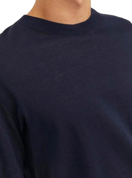 Camiseta Jack and Jones. Modelo Marco. Confeccionada en punto. Color azul marino. Cuello redondo. Manga corta. Extremos acanalados. Etiqueta lateral.