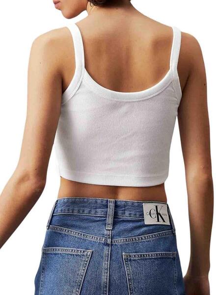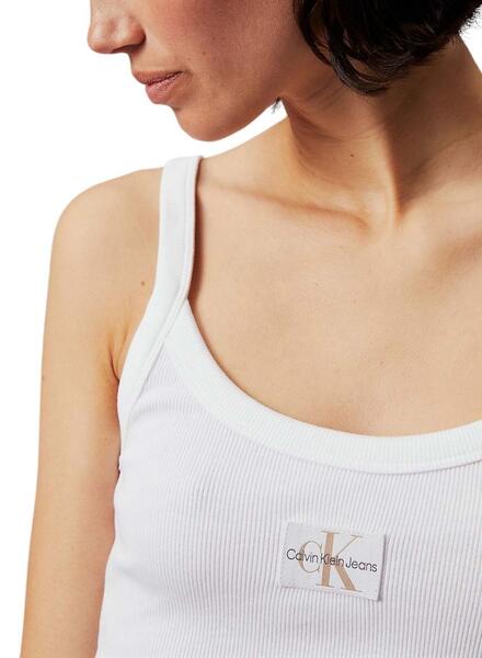 Top Calvin Klein blanco Woven Label canalé para mujer