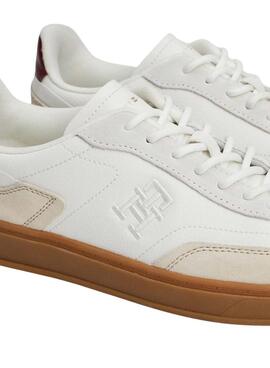 Zapatillas Tommy Hilfiger. Modelo Heritage Court. Color blanco. Paneles en beige. Talón en color granate. Suela de goma en color natural. Logo lateral bordado a tono. Cierre con cordones.