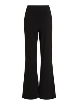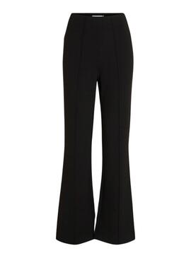 Pantalón Vila. Modelo Vibillie. Color negro. Corte flare con ligera campana en el bajo. Cintura elástica. Tiro alto. Costuras decorativas. Tejido elástico que se adapta perfectamente a las formas del cuerpo.