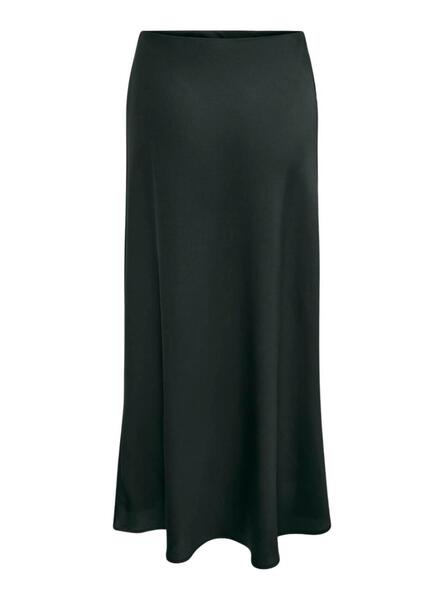 Falda Only. Modelo Chigo. Color verde. Cintura elástica. Ajuste regular. Corte midi. Tejido satinado. Tiro alto.