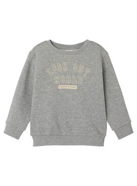 Sudadera Name It. Modelo Lew. Color gris. Cuello redondo. Manga larga. Extremos elásticos. Mensaje estampado en el pecho.