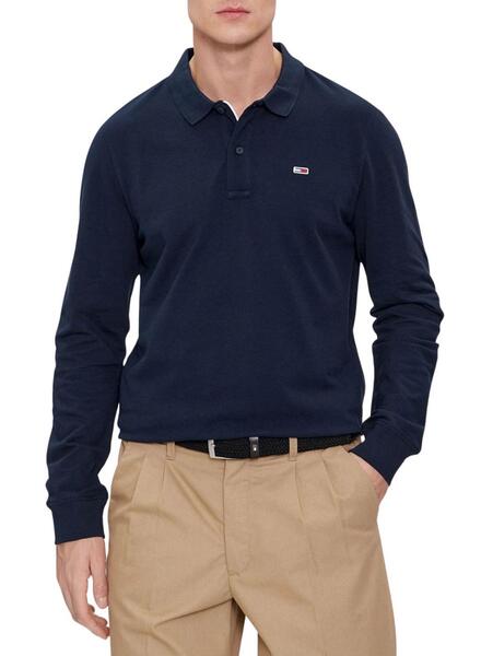 Polo Tommy Jeans. Modelo Placket. Color azul marino. Manga larga. Cuello con dos botones. Ajuste regular. Logo bordado en el pecho. Extremo de manga elástico.
