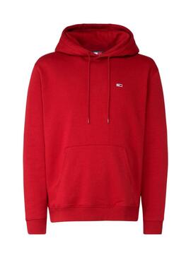 Sudadera Tommy Jeans. Modelo Hoodie. Capucha con cordón. Color rojo. Logo bordado en el pecho. Extremos acanalados. Ajuste regular. Bolsillo canguro.
