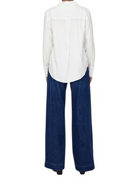 Camisa Only. Modelo Berit. Color blanco. Tejido liso. Cierre con botones. Cuello camisero. Extremos de mangas abotonados. Ajuste regular. Bajo redondeado.