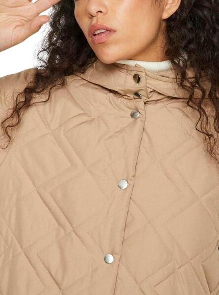 Abrigo acolchado Vila. Modelo Vijade. Color beige. Cuello alto. Con capucha. Extremos de manga acanalados. Tejido acolchado con costuras geométricas. Bolsillos laterales. Bajo redondeado. Cierre con botones automáticos.
