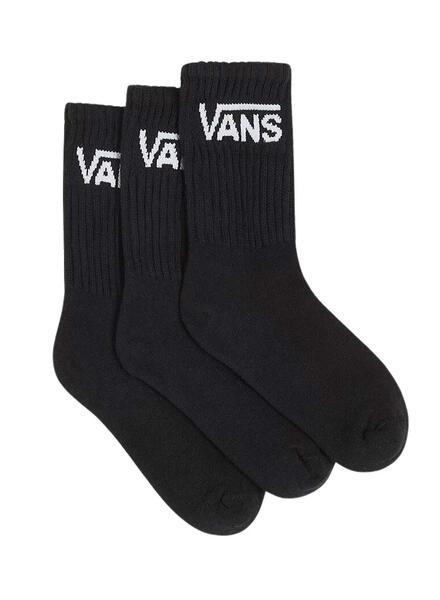 Calcetines Vans. Modelo Crew. Estilo básico. Pack de tres pares. Corte alto. Marca en color blanco.