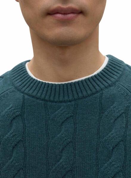Jersey Ecoalf. Modelo Tiloalf. Color verde. Cuello redondo. Extremos acanalados. Ajuste regular. Manga ranglan. Tejido con detalle trenzado.