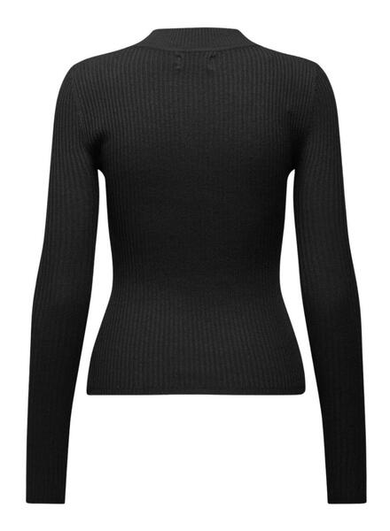 Jersey Only. Modelo Louisa. Color negro. Cuello semicisne. Tejido acanalado. Corte ajustado. Manga larga.