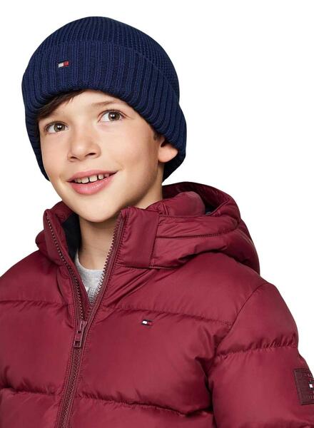 Gorro Tommy Hilfiger. Modelo Small Flag. Color azul marino. Estilo pescador. Bajo con vuelta. Tejido acanalado. Logo bordado en la parte delantera.