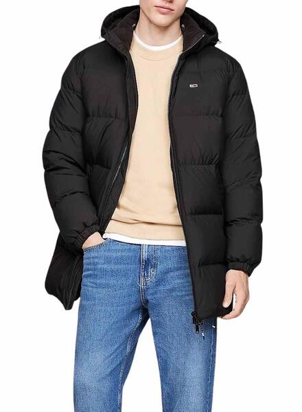 Parka acolchada Tommy Jeans. Color negro. Relleno de plumón. Con capucha. Cierre delantero con doble cremallera. Bolsillos laterales. Bandera de Tommy en el pecho. Parche de la marca en una manga. Detalles distintivos de Tommy Jeans. Bolsillo en el interior. El modelo lleva la talla M.