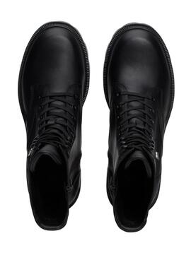 Botas Tommy Jeans de piel con tacón y cordones negro para mujer