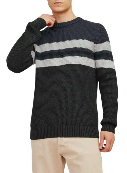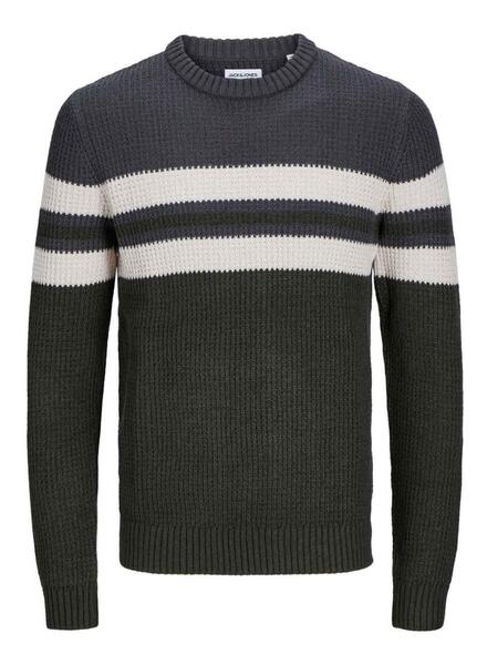 Jersey Jack and Jones. Modelo Sander. Color gris, azul marino y negro. Blosques de color. Cuello redondo. Extremos acanalados. Ajuste regular.