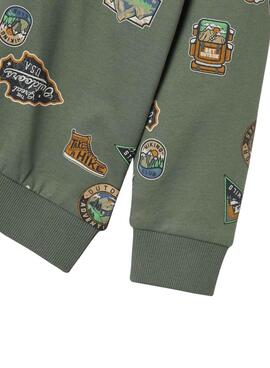 Sudadera Name It. Cuello redondo. Color verde. Estampada. Manga larga. Formato regular.