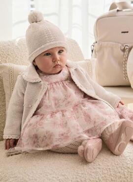 Abrigo y gorro Mayoral. Color crudo. Tricot. Abrigo de manga larga. Cierre principal con botones. Cuello con solapas. Gorro con pompón.
