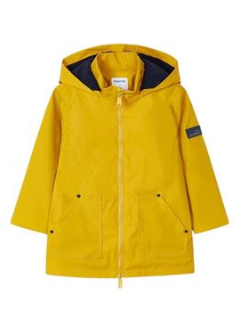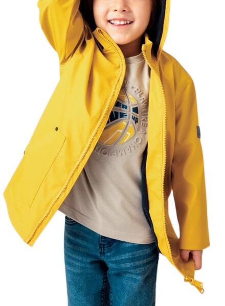 Chaqueta impermeable Mayoral. Color amarillo brillante. Capucha ajustable. Cierre de cremallera.