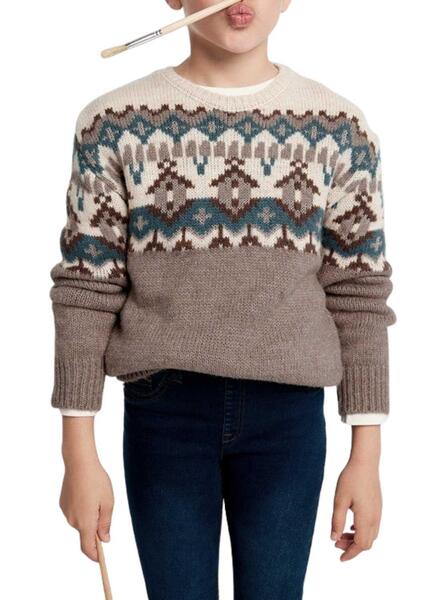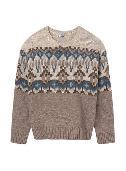 Jersey jacquard Mayoral. Cenefa. Color topo vigoré. Cuello redondo. Manga larga. Puños y bajo elásticos.