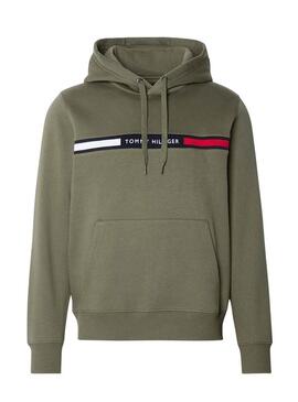 Sudadera Tommy Hilfiger. Modelo Chest Insert. Color verde. Capucha con cordones ajustables. Extremos acanalados. Ajuset regular. Cinta en el pecho con marca y logo en contraste.