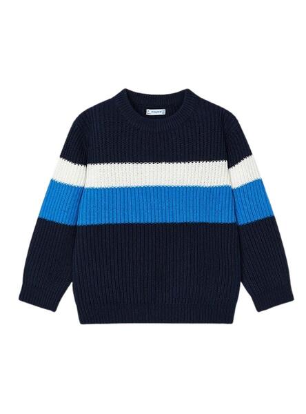 Jersey de Mayoral. Color azul cerúleo, azul marino y blanco. Diseño colorblock. Cuello redondo. Canalé. manga larga.