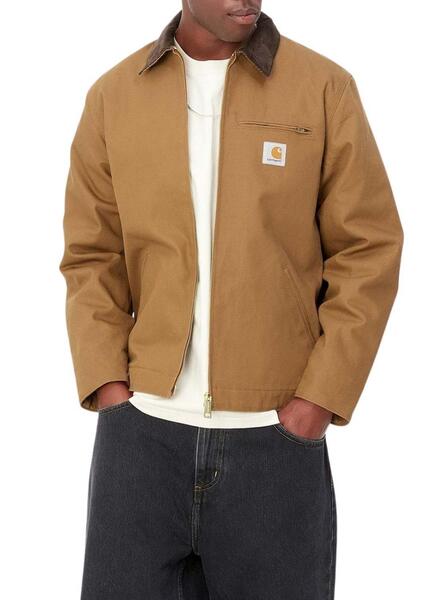 Cazadora Carhartt. Modelo Detroit. Color marrón. Cierre con cremallera bidireccional. Cuellos en contraste. Bolsillos laterales. Bolsillo en el pecho con cremallera. Etiqueta tejida de la marca en el pecho. Forro de algodón suave y cálido. Bolsillo interior. Ajuste regular.